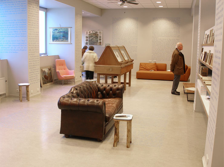 ![]() De gelukkige klas Inrichting van de tentoonstelling 'De gelukkige klas' in het nationaal onderwijsmuseum. Naar het boek 'De gelukkige klas' van Theo Thijssen. Dit boek is in 2007 in een oplage van 1 miljoen stuks verspreid door 'Nederland leest' In de tentoonstellingsruimte waan je jezelf in het boek. Op de muren en op de grond zijn letterlijk pagina's uit het boek afgebeeld. In de boekenkast staat, naast het boek van Thijssen, allerlei verwant tekstmateriaal. Door heel de ruimte heen is een diversiteit aan zitplekken gecreëerd, zodat iedereen op een voor hem of haar zo prettig mogelijke manier kan lezen. i.s.m. Ariënne Boelens zie ook: 40 jaar CITO De gelukkige klas |