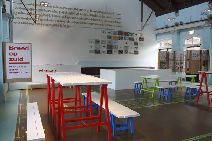 ![]() Breed op Zuid Inrichting van de tentoonstelling 'Breed op Zuid' in 't Gemaal, Rotterdam Breed op zuid is een tentoonstelling over de bredeschool die vlak achter 't Gemaal gerealiseerd gaat worden. De tentoonstelling laat 50 ontwerpen zien van 50 architectenbureaus die hebben deelgenomen aan de prijsvraag die door Air i.s.m. het Onderwijsmuseum is uitgeschreven. Daarnaast is er in 't Gemaal een multifunctionele plek (een mini bredeschool) gecreëerd die snel is om te bouwen van een minitheater naar kookworkshop naar vergaderruimte etc. i.s.m. Ariënne Boelens Office Breed op Zuid |